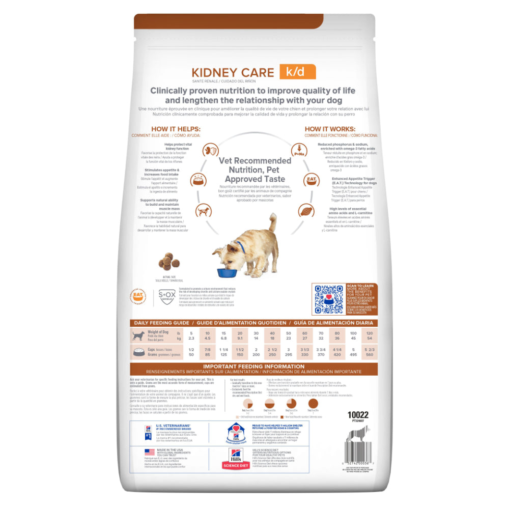 Hill's nutritionists and veterinarians developed Prescription Diet® k/d®, clinical nutrition to support your dog's kidney function and help sustain muscle mass. In fact, the nutrition of k/d is clinically tested nutrition to improve & lengthen quality of life.