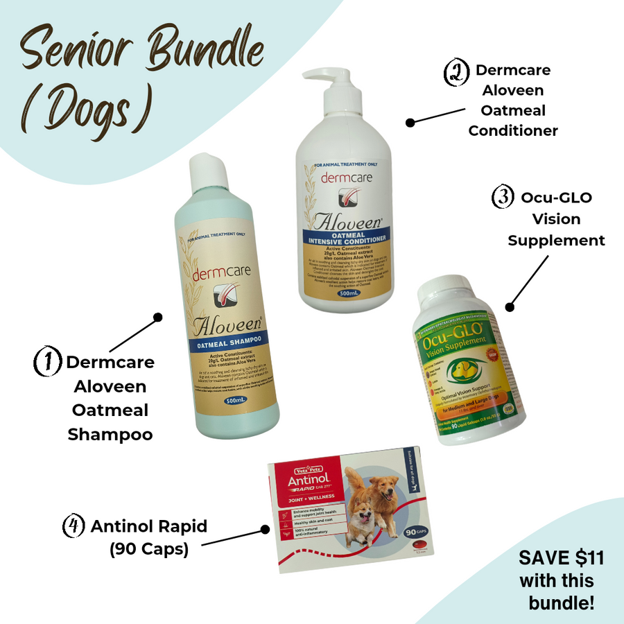 As your dog gets older, you may be wondering if there is more you could do to slow down the effects of their aging. Dogs and cats enter their senior years after 7 years approximately; however this can be slightly earlier in large breed dogs. Degenerative wear and tear occur in several different body systems, especially in their joints. We have curated a Bundle specifically for our beloved seniors. Individual items may vary based on health needs, weight and species.
